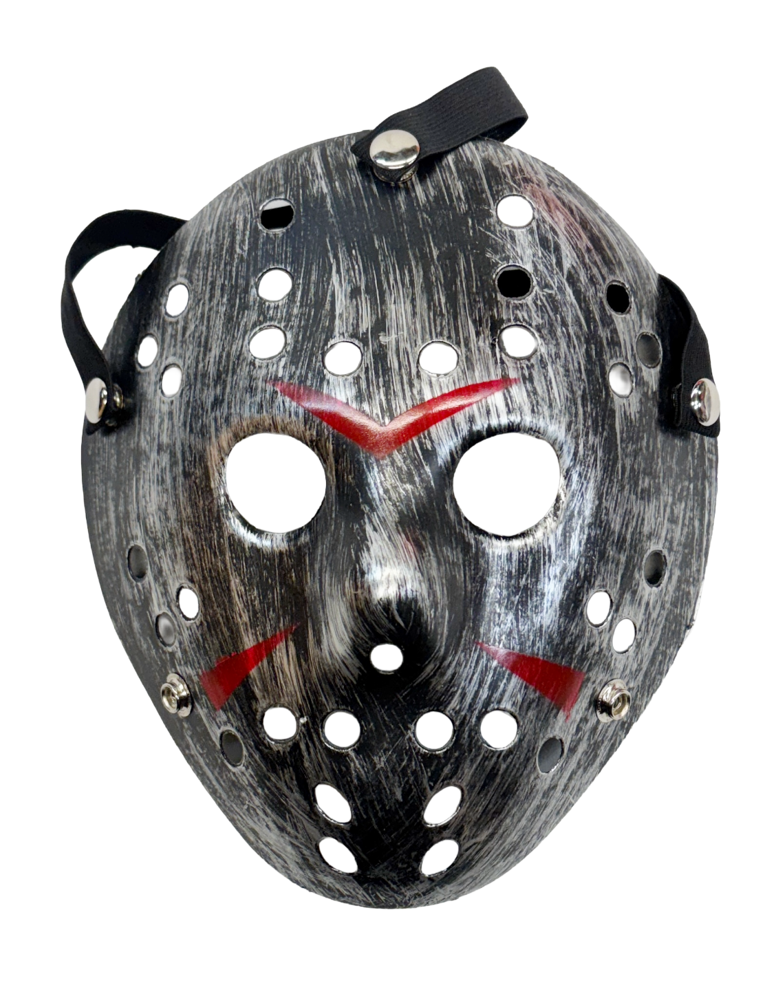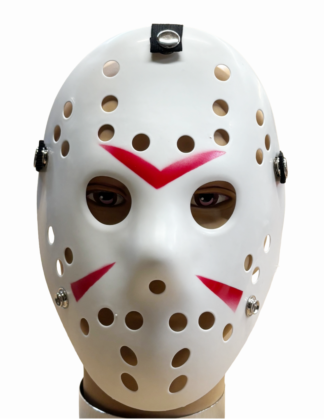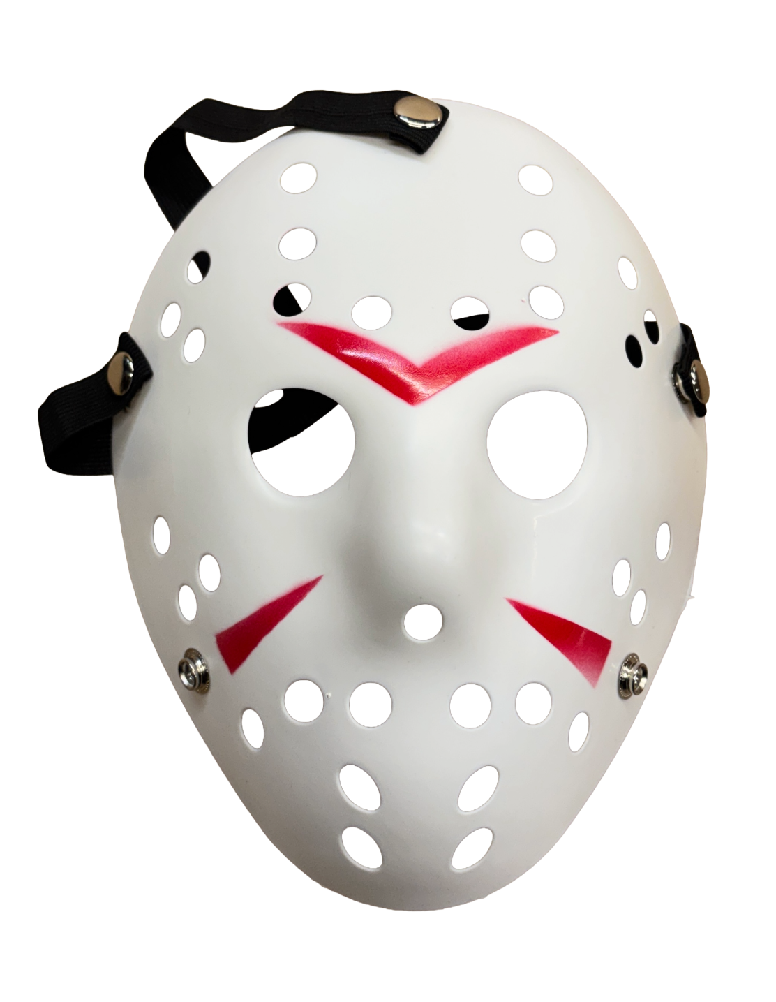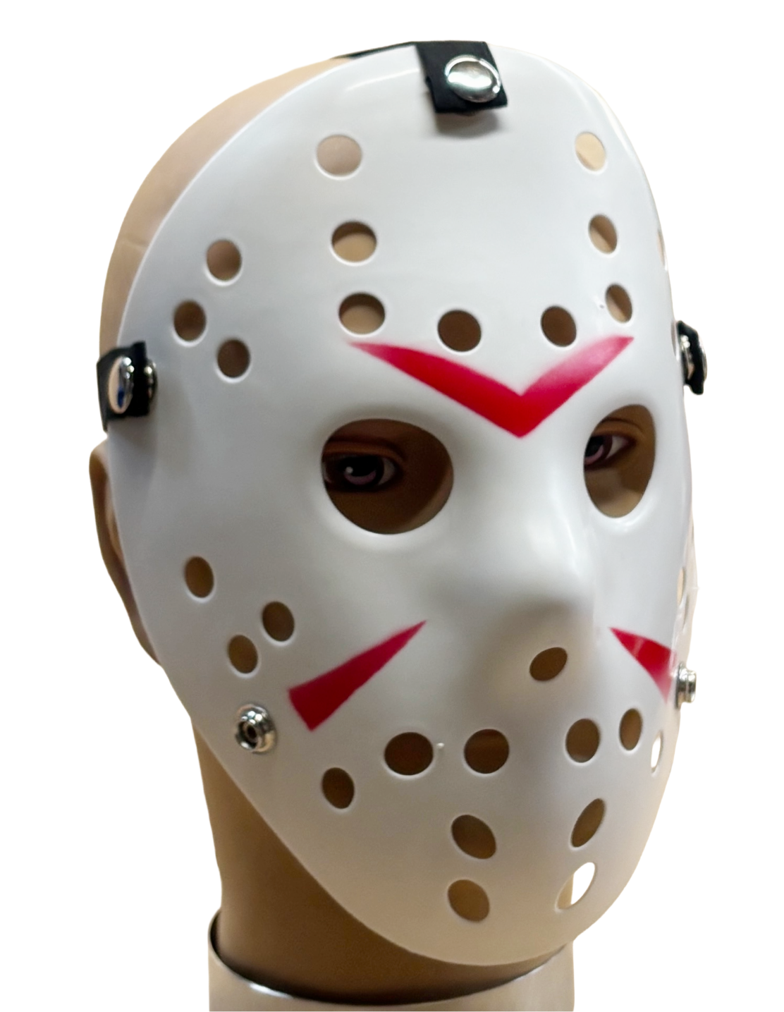 Designed with classic vent holes and bold painted accents, this lightweight plastic mask delivers an instantly recognizable horror style without the weight or discomfort of a real mask.