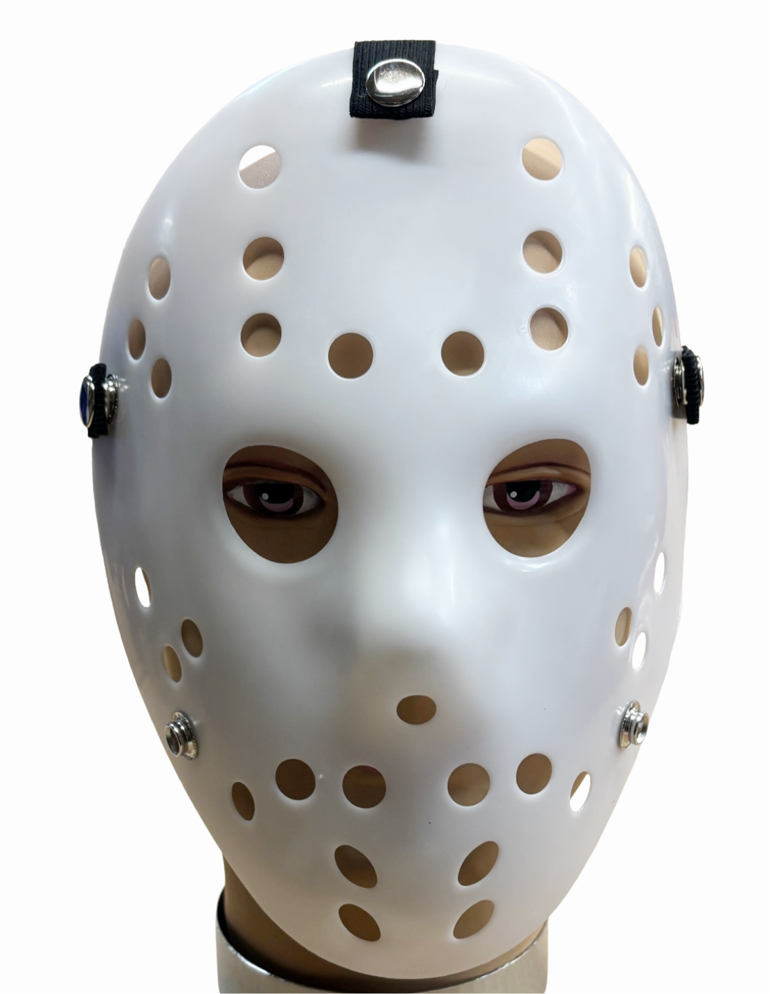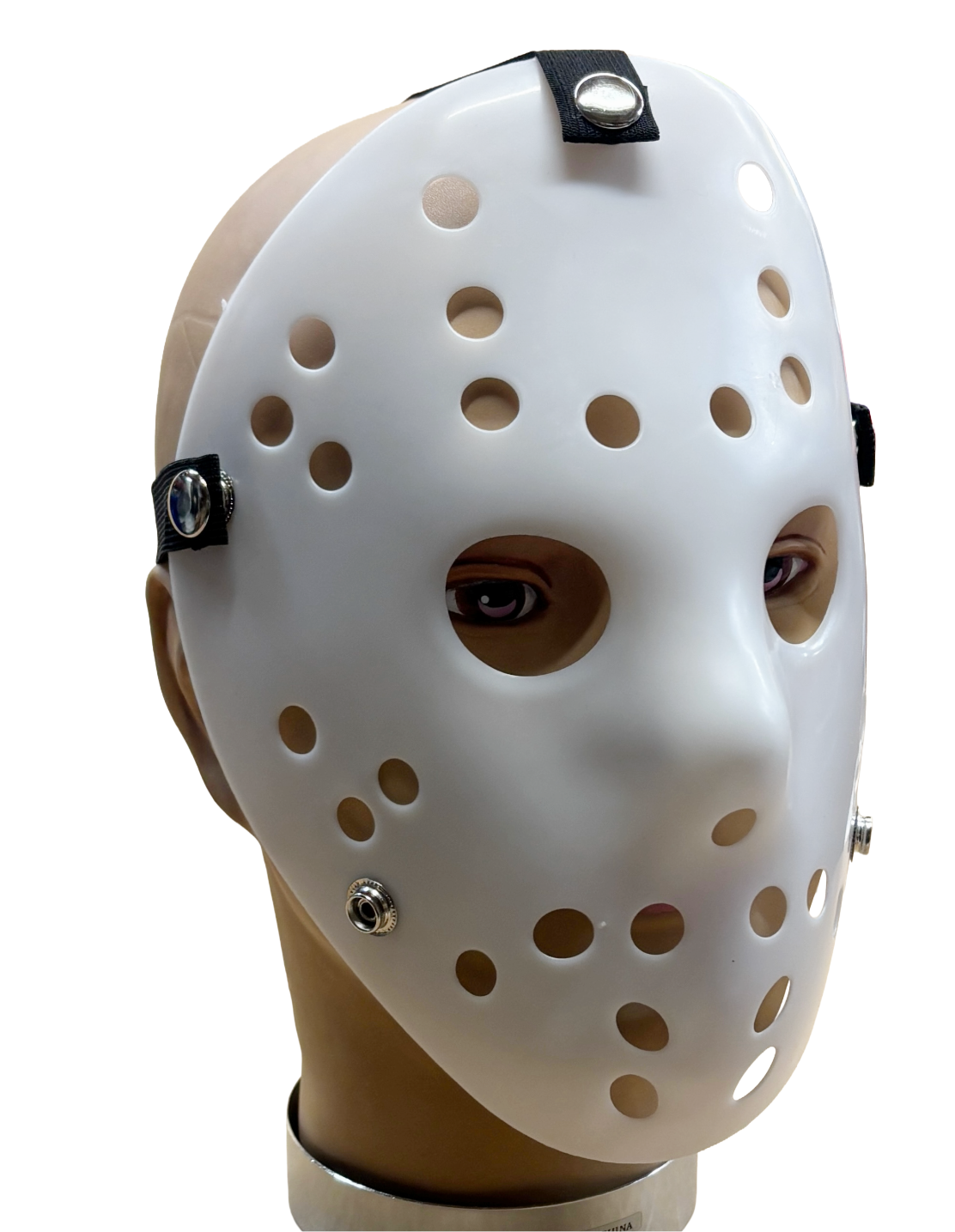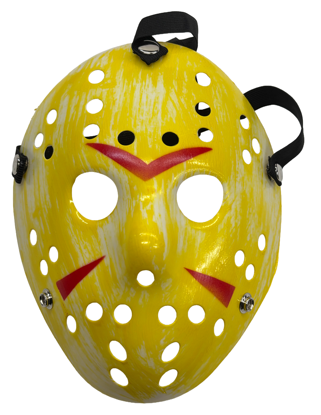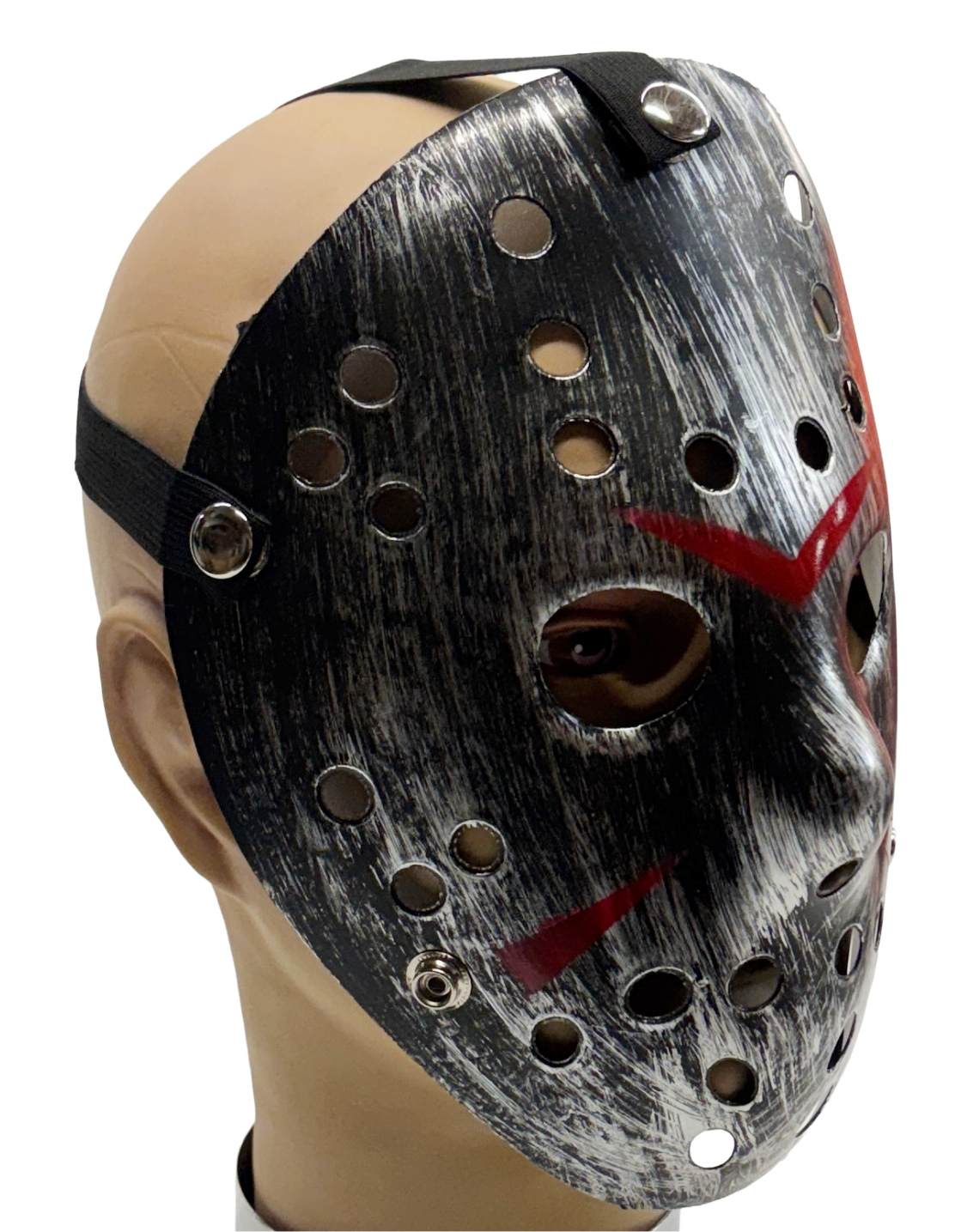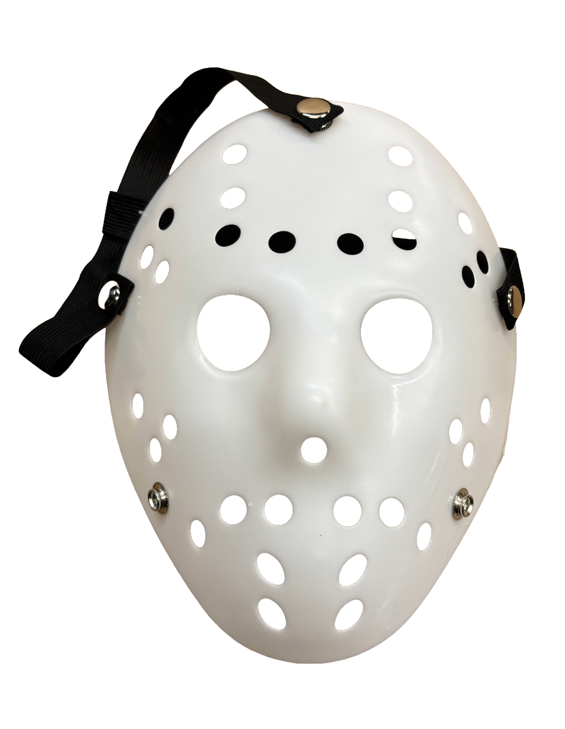 Designed with classic vent holes and bold painted accents, this lightweight plastic mask delivers an instantly recognizable horror style without the weight or discomfort of a real mask.