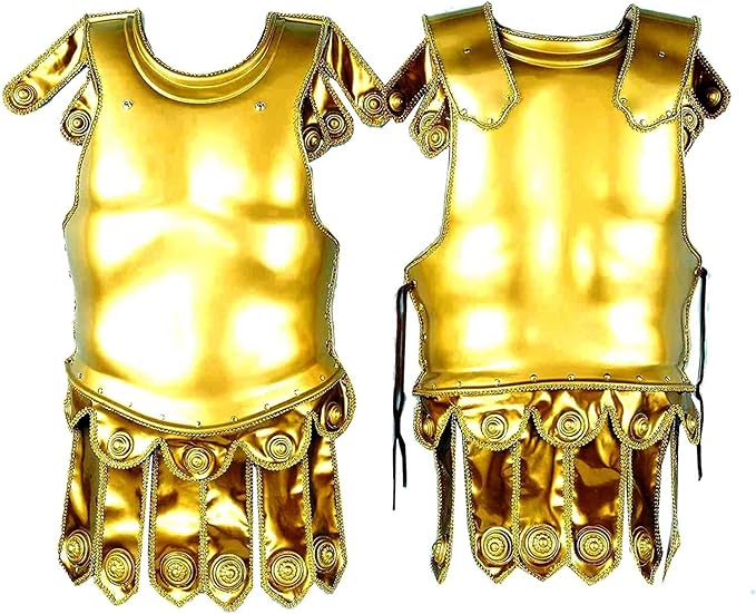 Elevate your Roman warrior look with this striking gold chest plate. Crafted with premium detailing, this deluxe armor piece delivers authentic gladiator style for costumes, cosplay, and theatrical performances. Perfect for completing any classical ensemble.