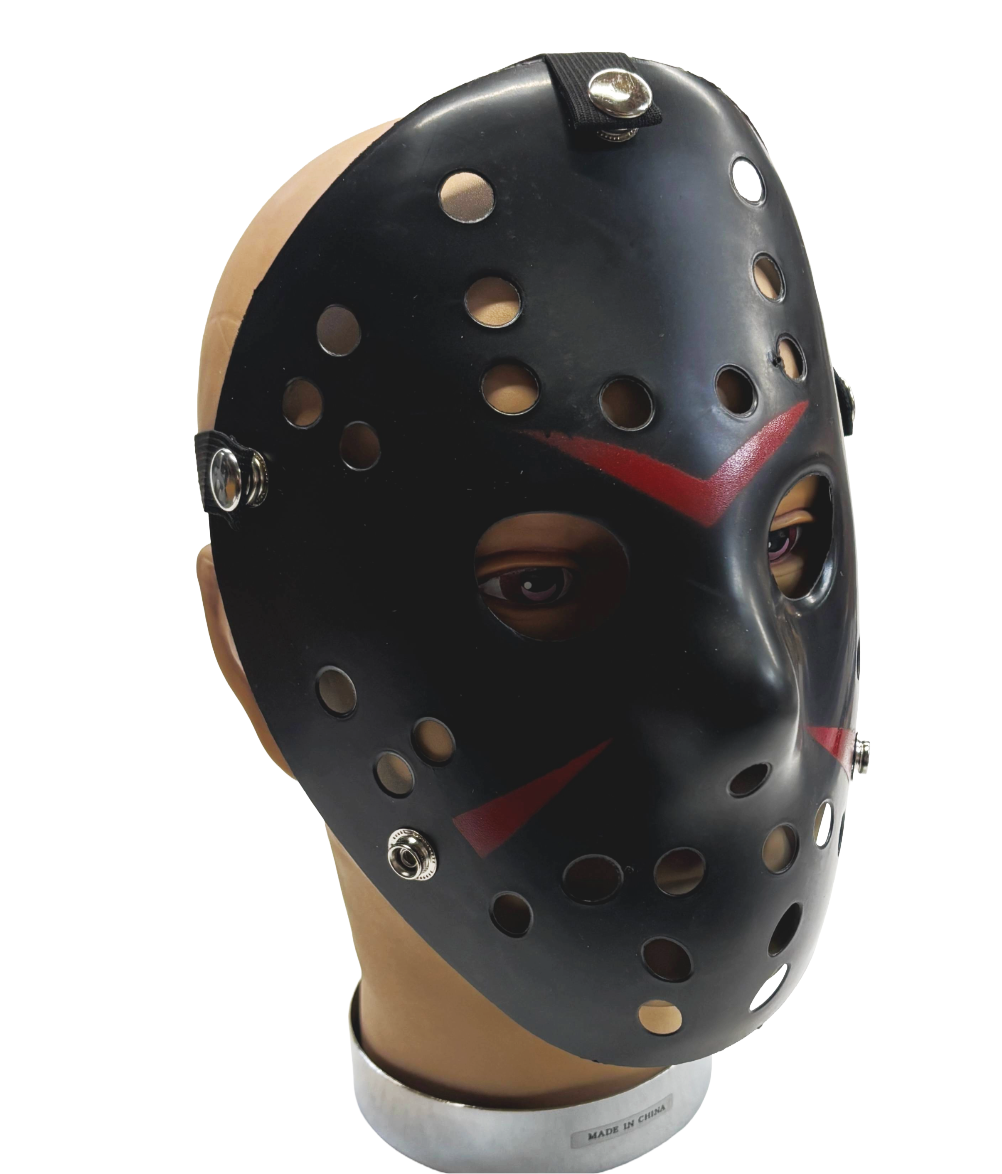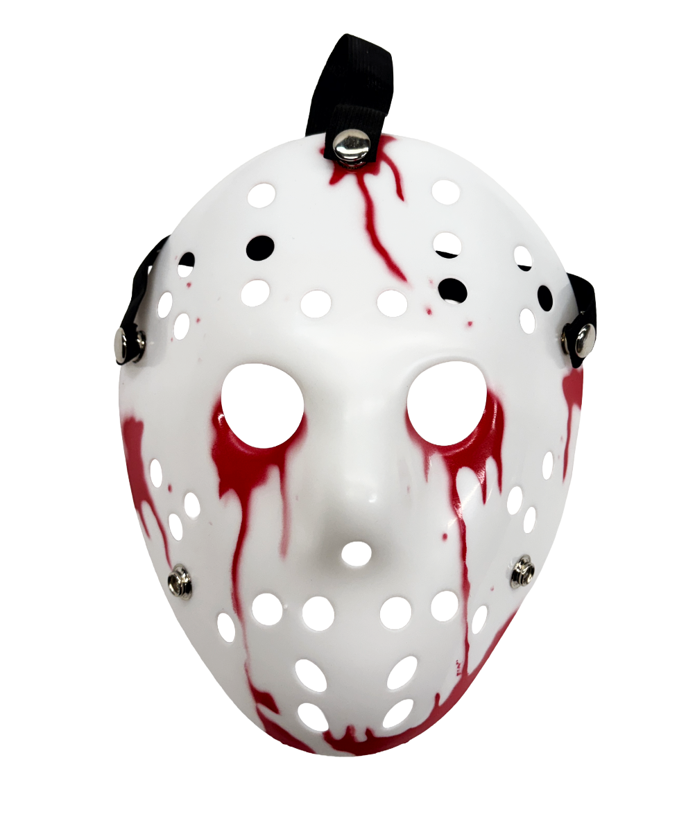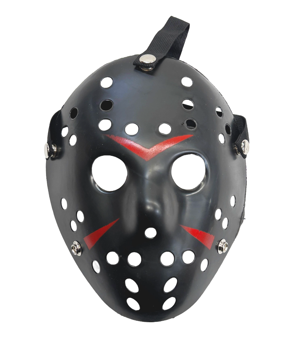 Designed with classic vent holes and bold painted accents, this lightweight plastic mask delivers an instantly recognizable horror style without the weight or discomfort of a real mask.