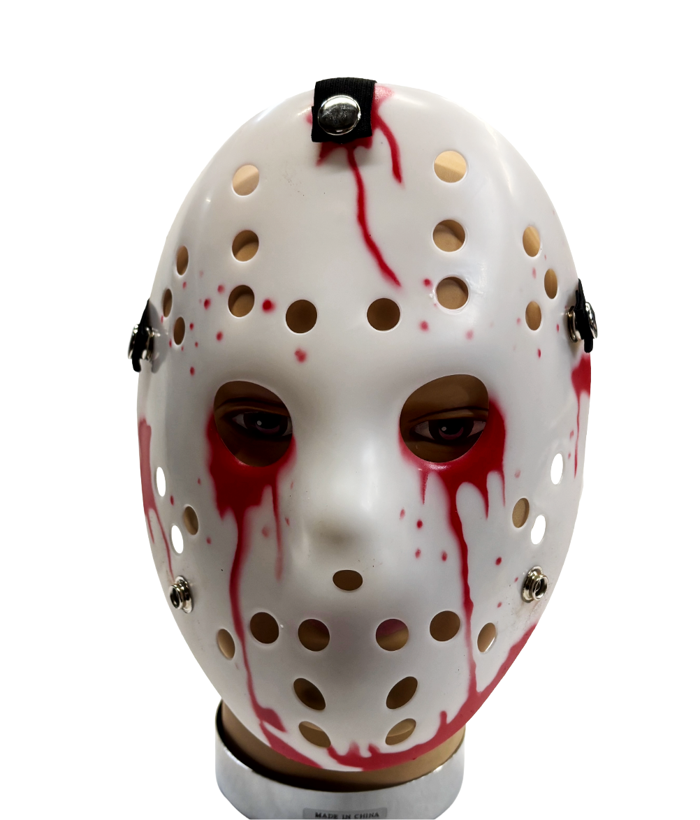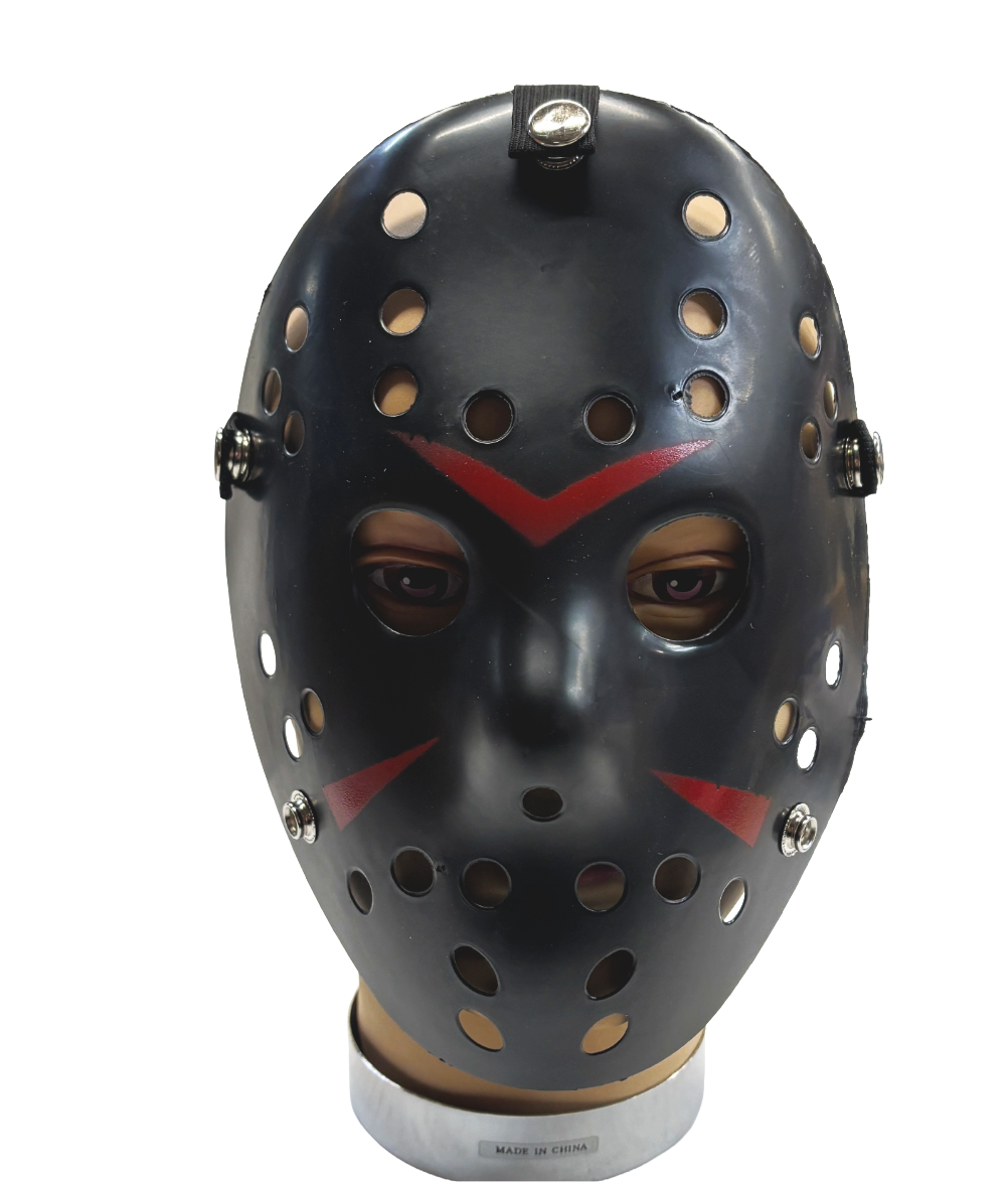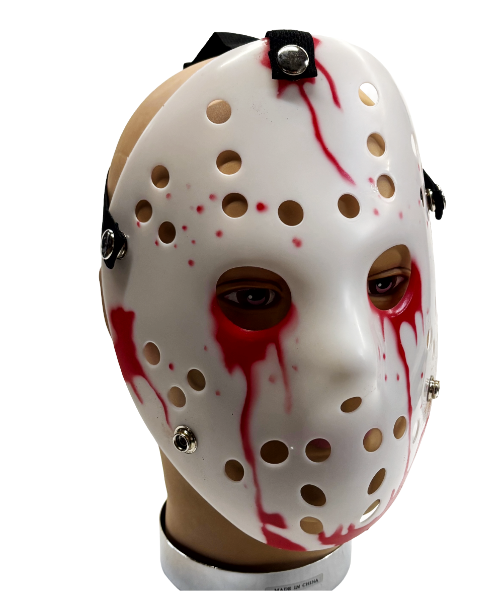 Designed with classic vent holes and bold painted accents, this lightweight plastic mask delivers an instantly recognizable horror style without the weight or discomfort of a real mask.