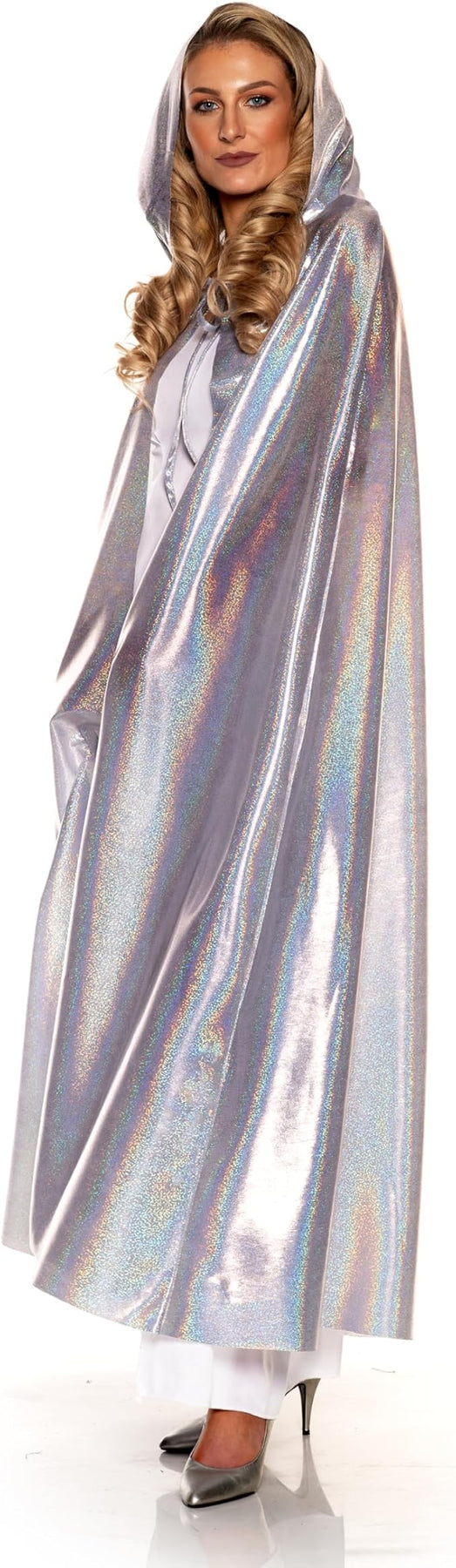 Elevate any costume with this striking Metallic Hooded Cape for adults. Its shimmering fabric catches the light beautifully, adding dramatic flair and mystery to your look. Perfect for fantasy, sci-fi, or villain costumes, the hooded design enhances your presence while providing easy wearability. Make a bold statement and captivate onlookers effortlessly.