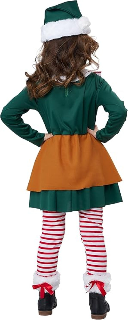 Transform your little one into a sweet gingerbread elf this holiday season. This charming costume features a brown gingerbread-inspired tunic with festive elf details, perfect for toddlers. Ideal for Halloween, Christmas parties, or themed celebrations. Comfortable fit for active play.